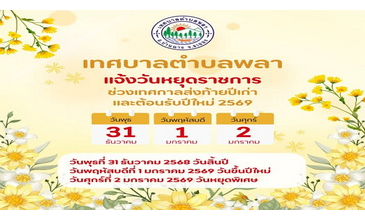 | แจ้งการจัดทำโครงการตั้งจุดตรวจและแก้ไขปัญหาจราจรช่วงเทศกาลปีใหม่ ๒๕๖๙